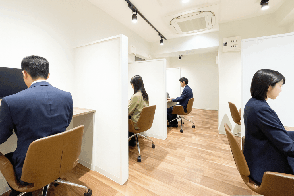 特徴 | 完全個室や遮音ブース、登記・郵便・会議室の基本利用が料金に含まれるケースが多い。有人人対応や共有ラウンジが整備されていることも |