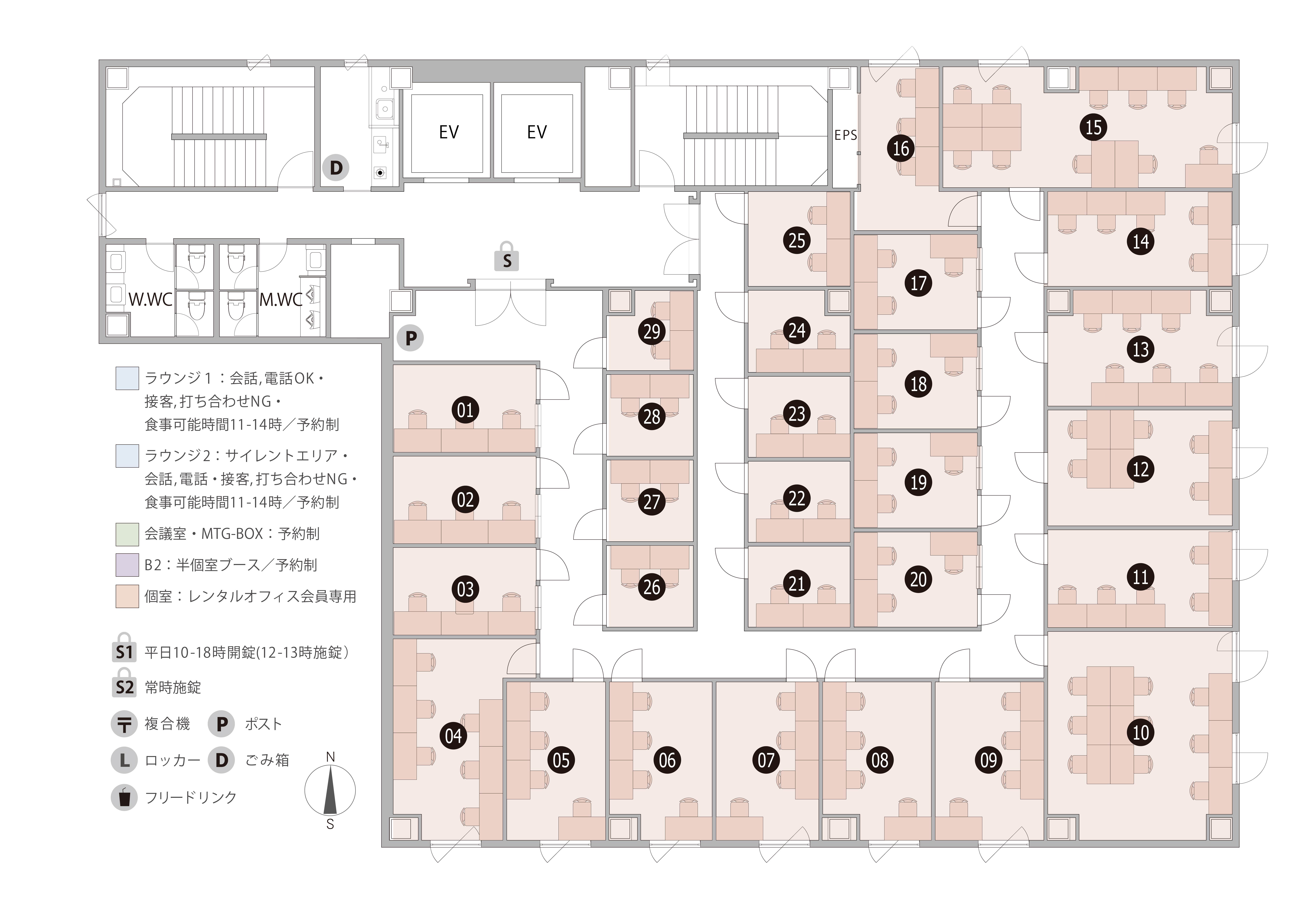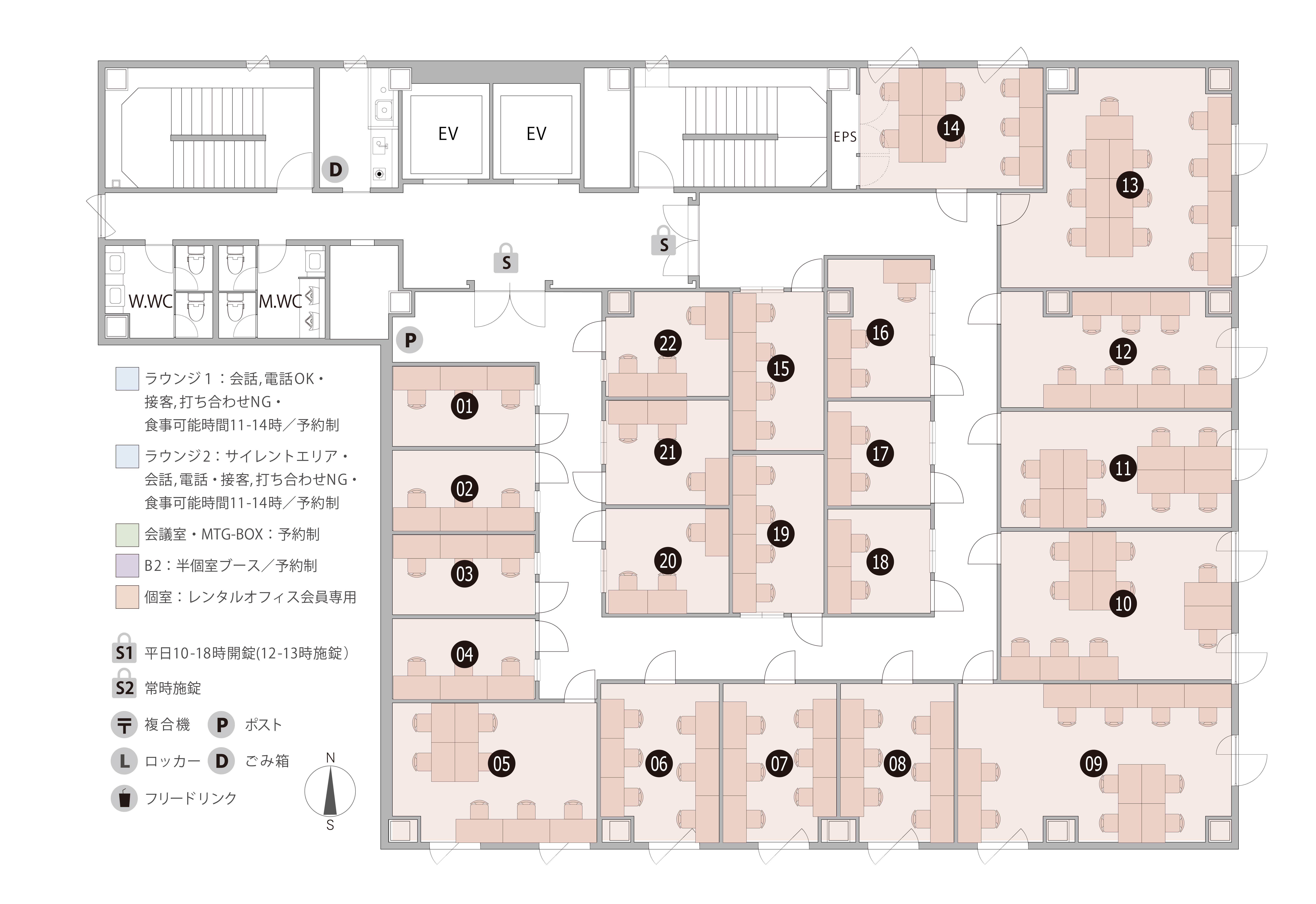 家具付き 完全個室 無料ラウンジ(他拠点利用も可) 有人受付 【カメラマークに採寸図あり】 | |
