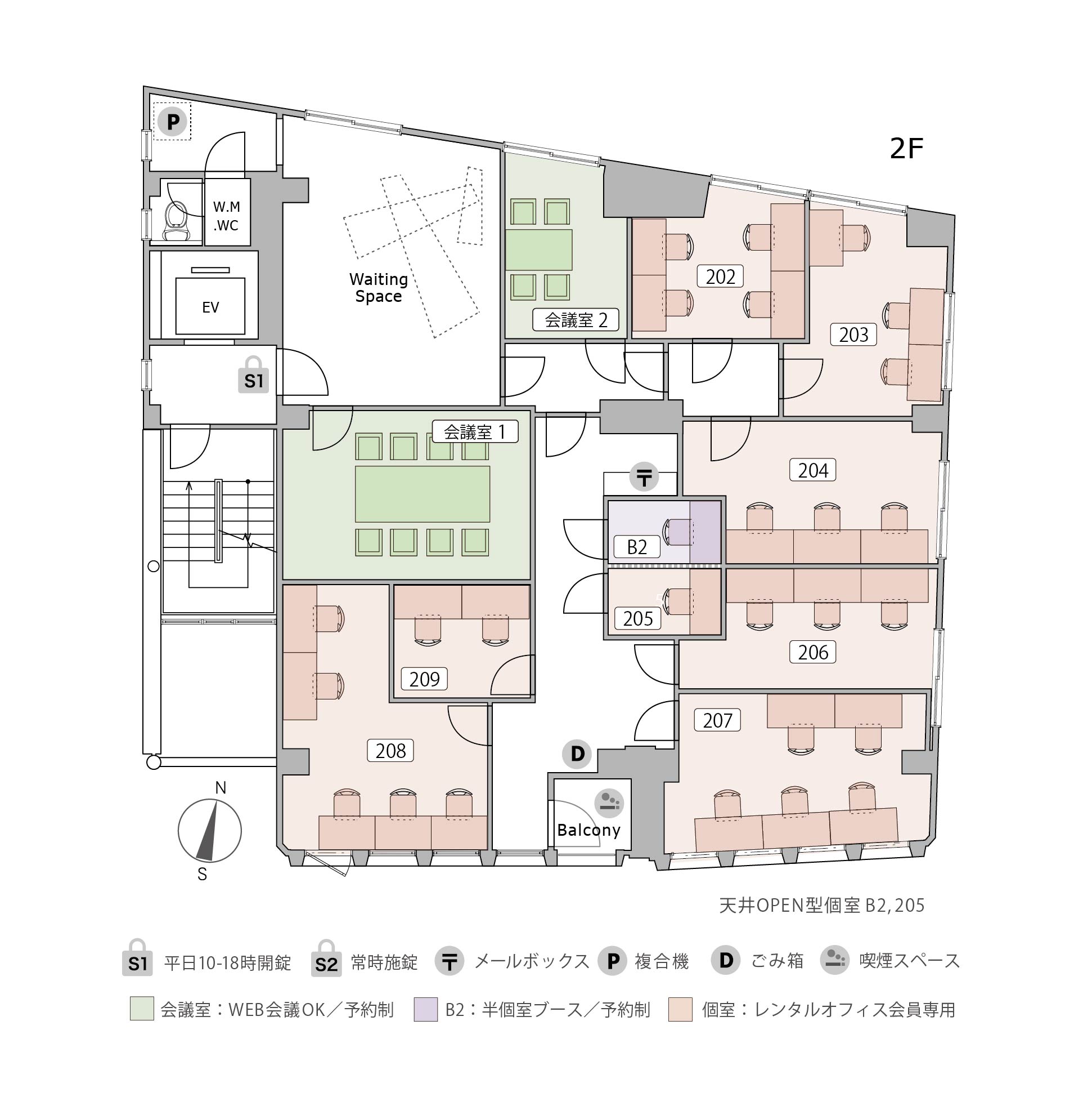 待合や会議室など充実の共用部分を備え、エリアNo.1のコストパフォーマンスを実現!1~5名用オフィスは全室が家具・ネット完備。