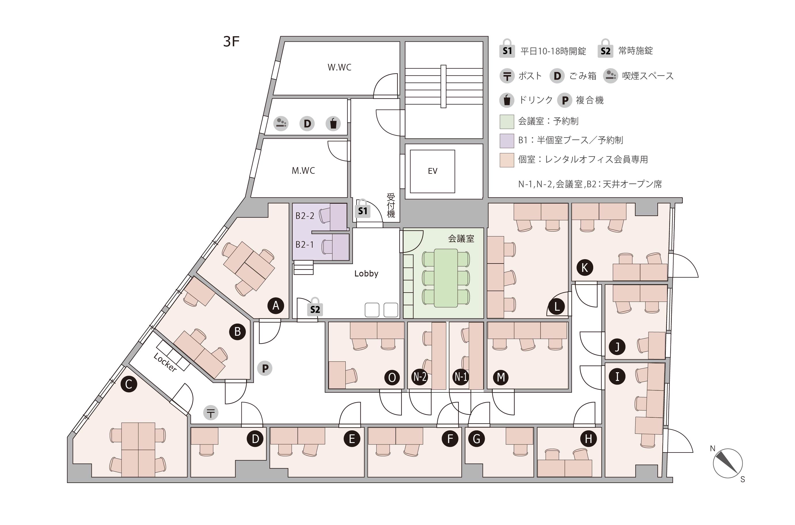 専用個室オフィス低価格で一等地にネット・家具付きの個室オフィスを持てます(登記可・ポスト完備)