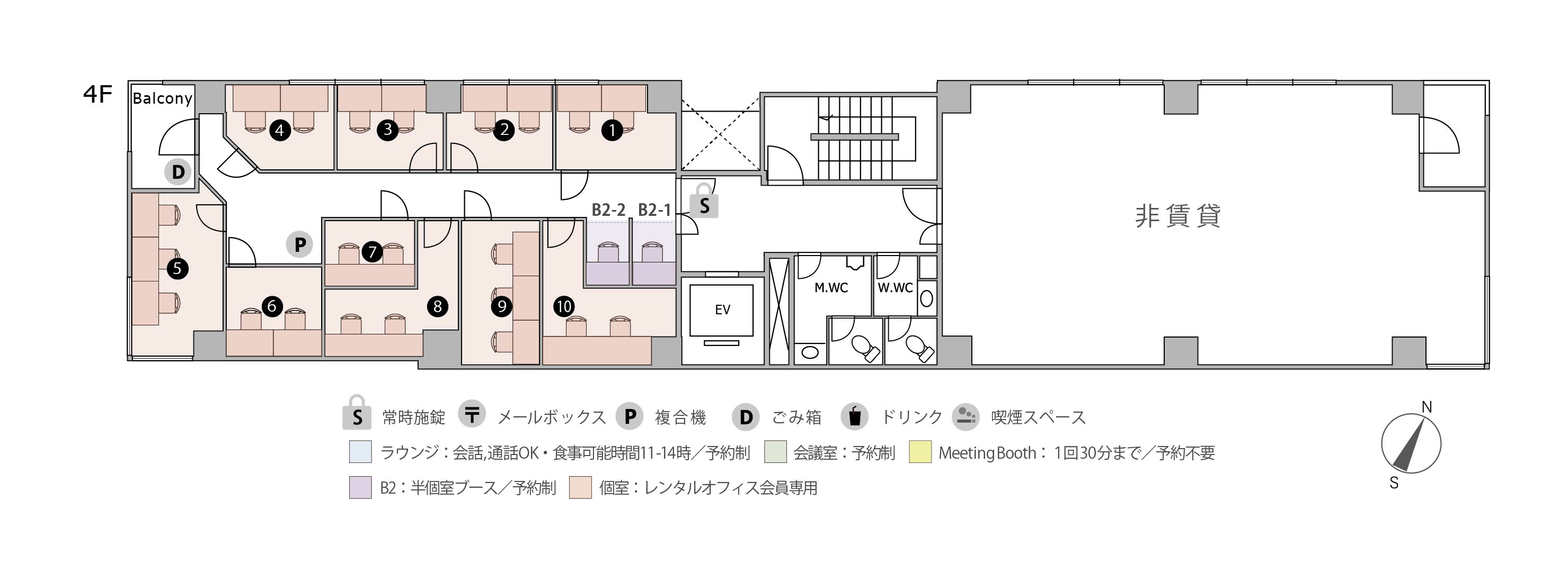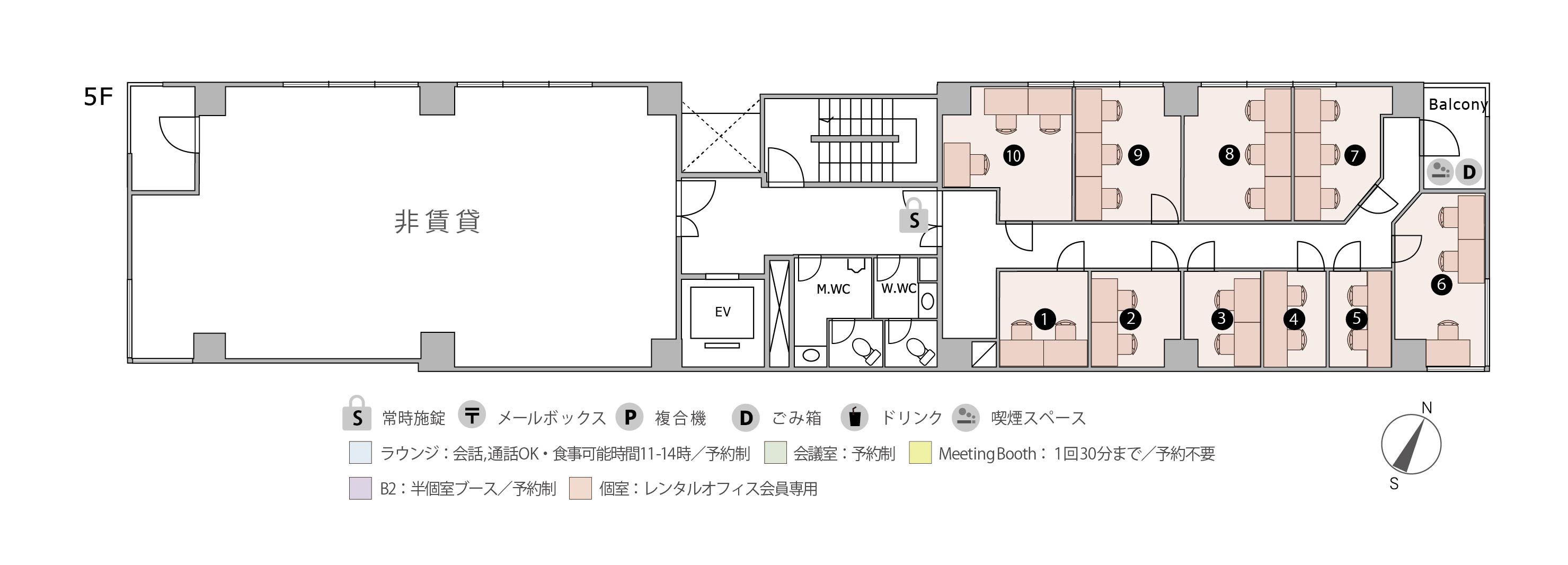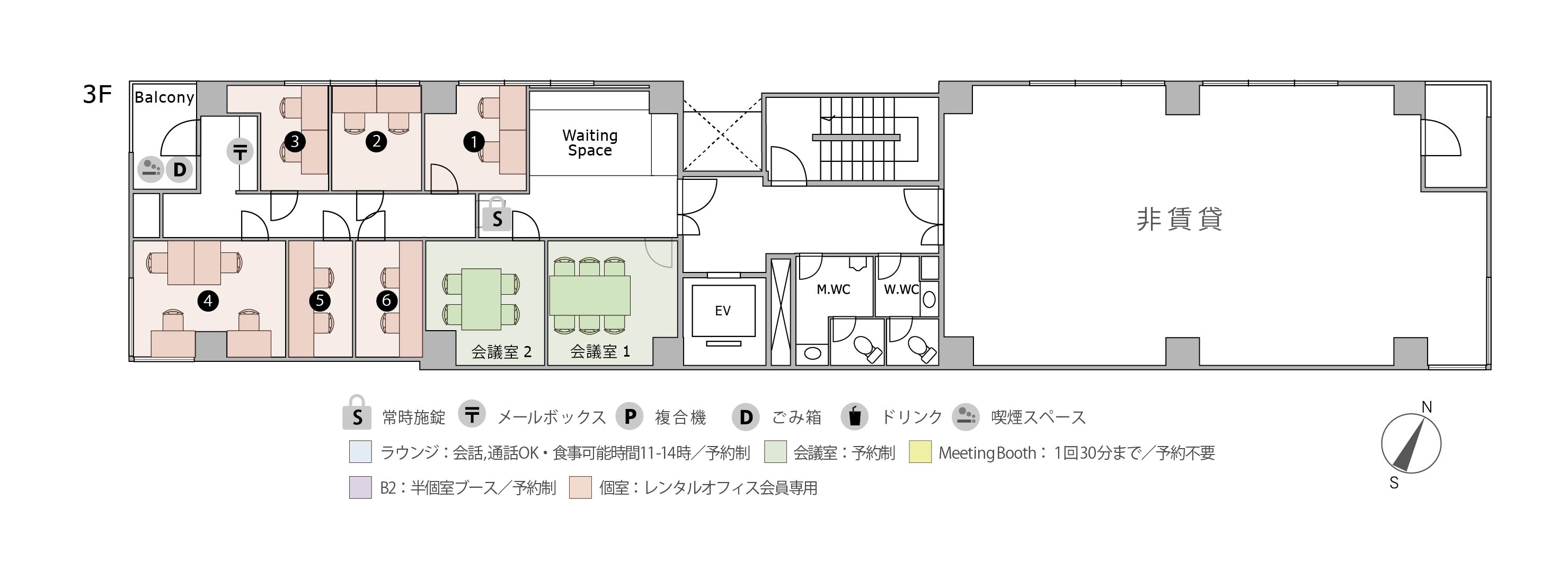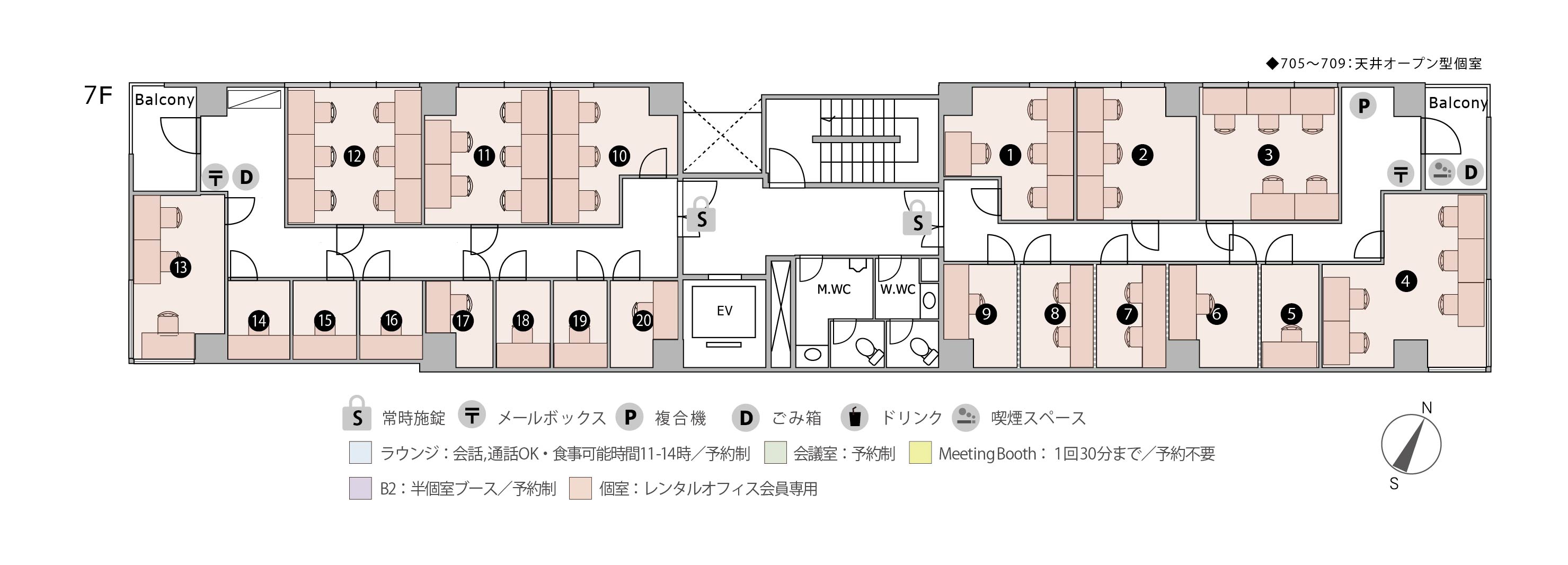 | 7F-15 | 1 | 2.46 ㎡ | 39,160 円 | 7,700 円 | 家具付き ブース型個室 無料ラウンジ(他拠点利用も可) |